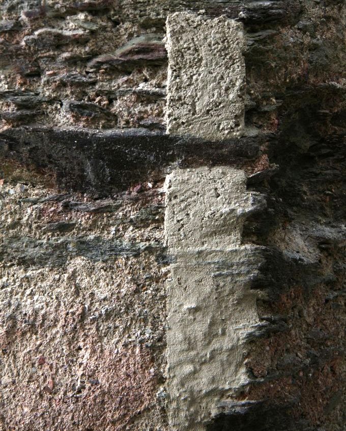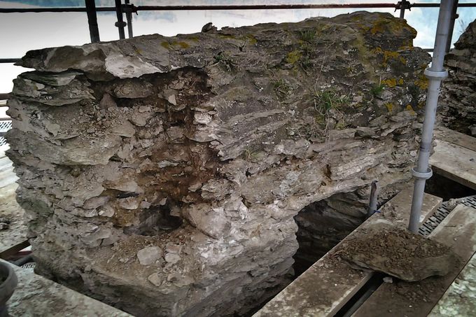 Während dem Ausräumen der Fugen zeigte sich, dass von den ursprünglichen Quaderhäuptern nur noch rudimentäre Reste vorhanden waren. In Bereichen mit historischem Kalkmörtel ließ sich eine deutlich bessere Flankenhaftung erkennen, was auch einen höheren Aufwand zur Folge hatte. Zudem gingen einzelne Mörtel-Bereiche in eine humusartige Fugenfüllung über. Als Folge lösten sich beim Entfernen der geschädigten Fugenfüllung Mauerquader aus dem Verband. Der Quaderverband war folglich nur über die ungebundene Fugenfüllung stabil und die einzelne Steine liegen mehr oder weniger locker im Verband.